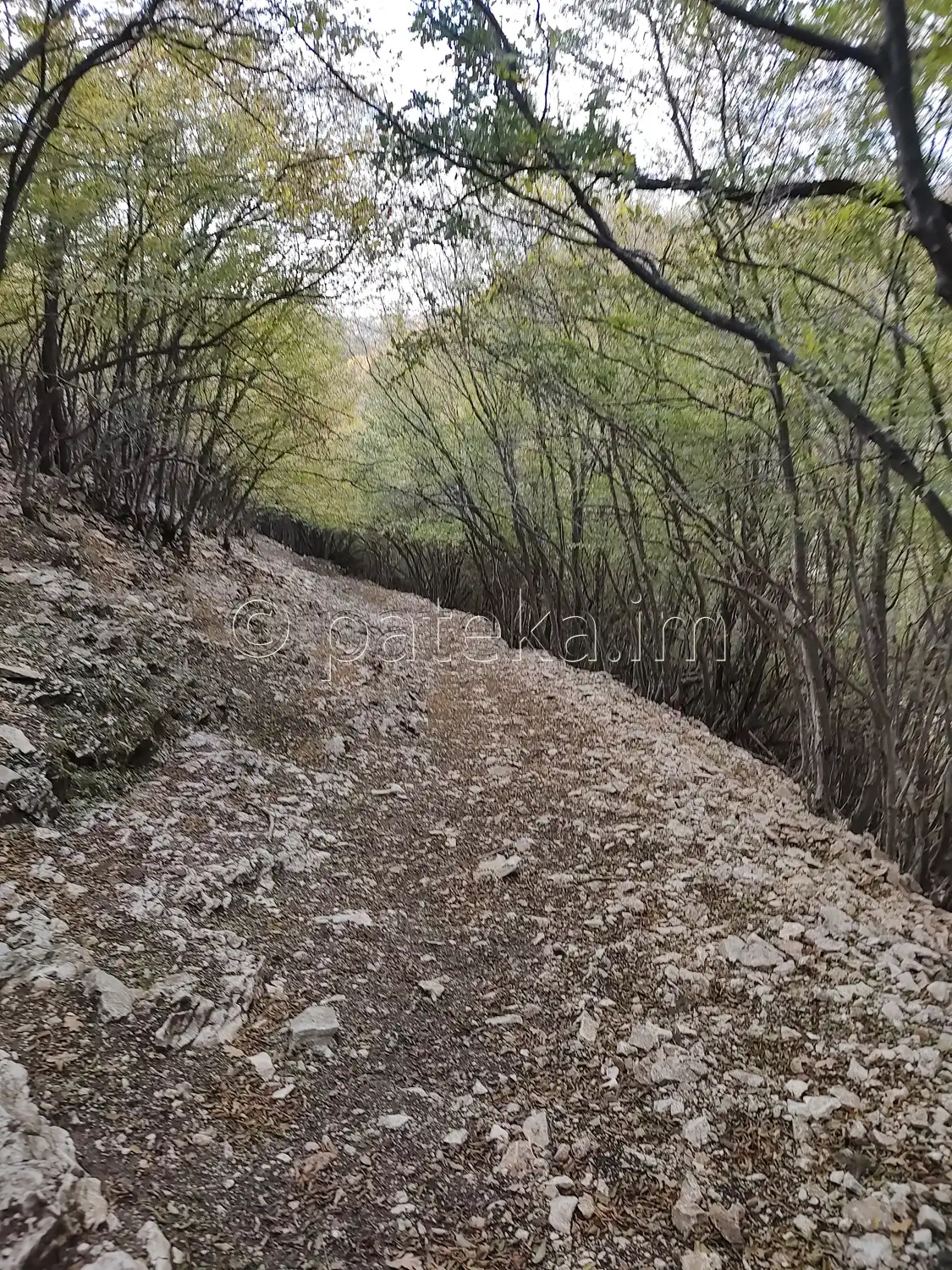 В далечния край на поляната започва широка пътека надолу към речното корито. От нея се отделят множество малки и стръмни пътечки надолу, които са по-подходящи при изкачването на връщане. Слизането отнема около 10 минути, след което се продължава по тясна пътека вдясно до достигане на скалните образувания.