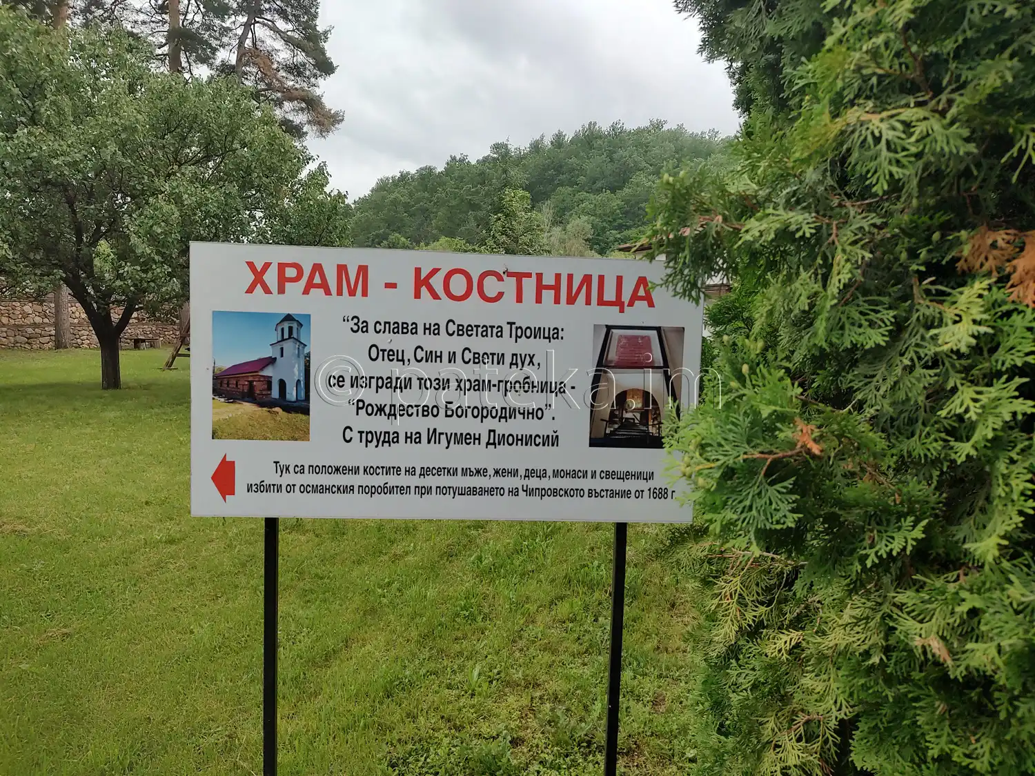 Вляво след входа се намира църква-костница Рождество Богородично. Построена е при възстановяването на Лопушанския манастир в средата на XIXв. Тогава при строежа на съборната църква е открит масов гроб на над 2000 души от времето на Чипровското въстание. Строителите изграждат първо костницата, след което продължават градежа на храма. Смята се, че пак тогава е скрита в зазидан тайник и чудотворната икона на Богородица.