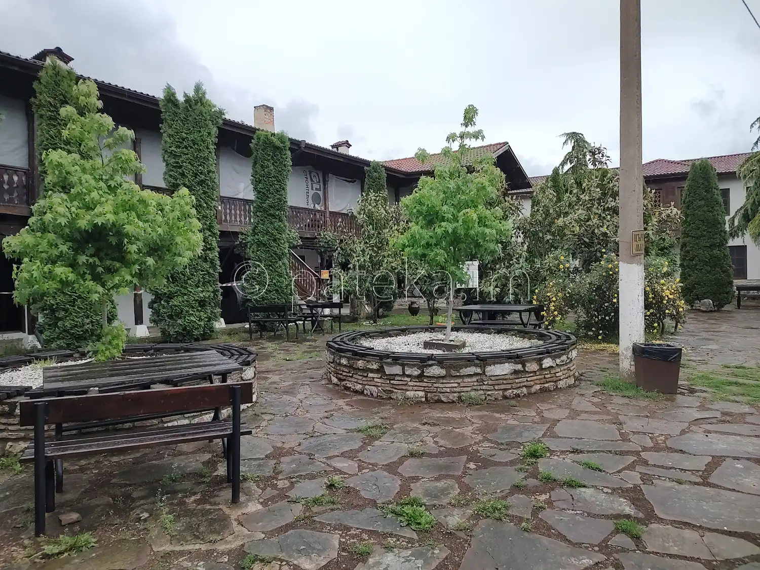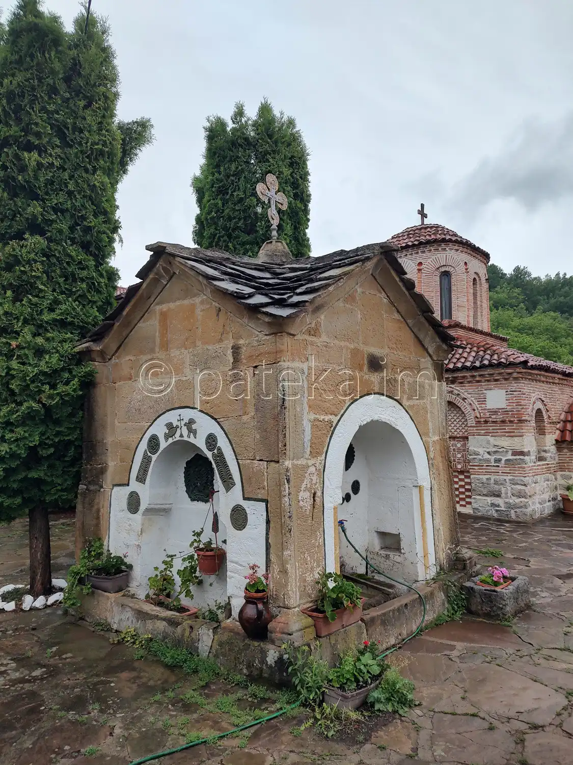 В двора на манастира има още клетка с птици, пейки и маси, църковен магазин, както и чешма-аязмо, датираща от 1856г.
