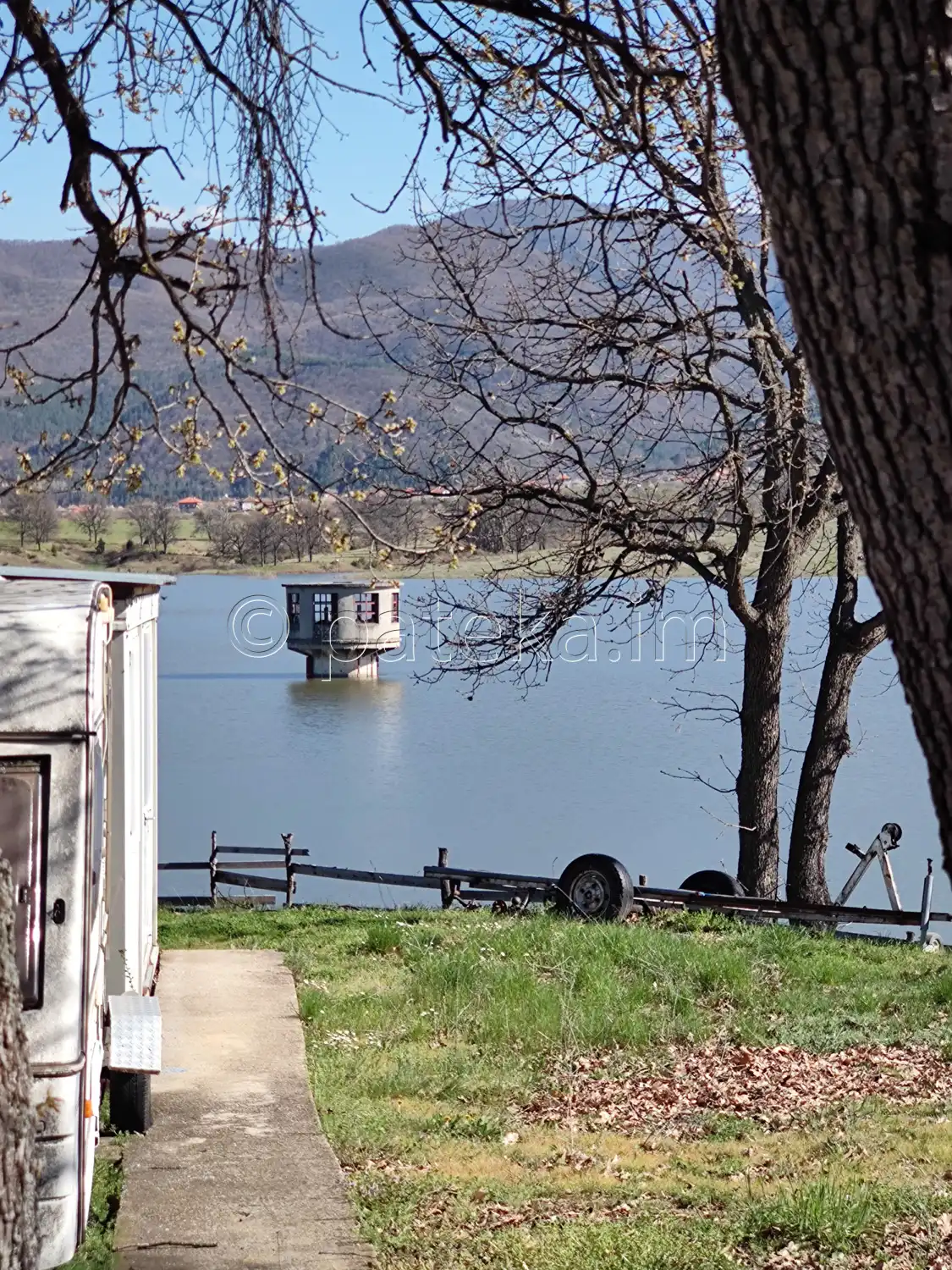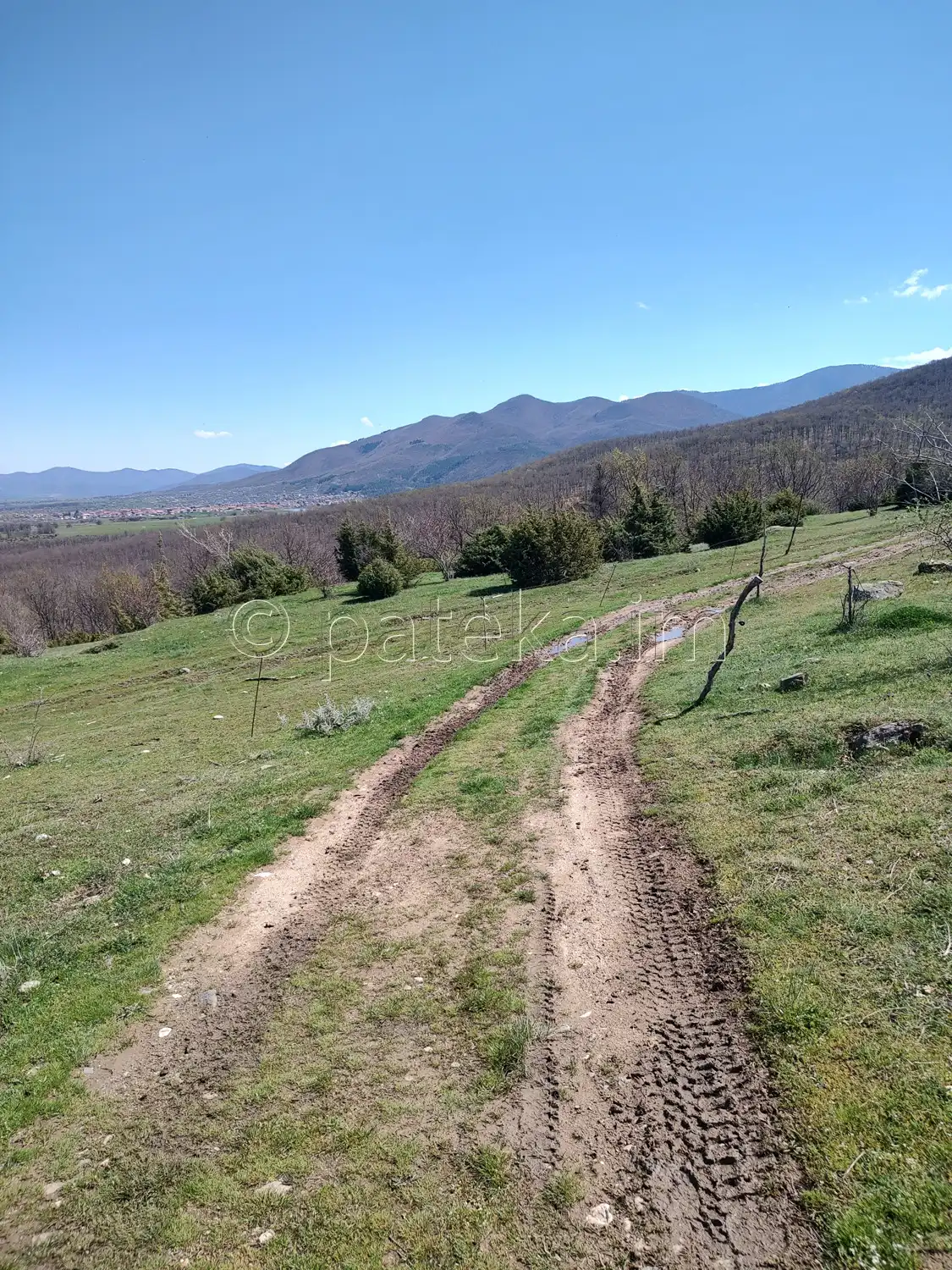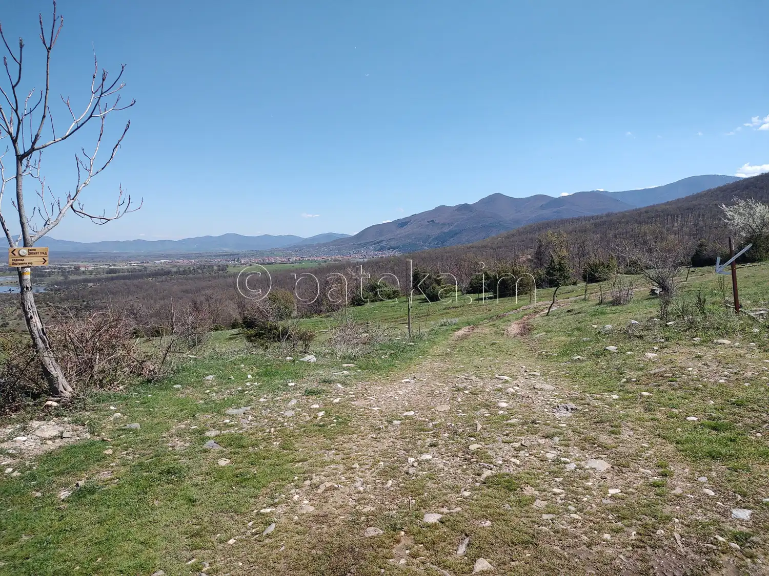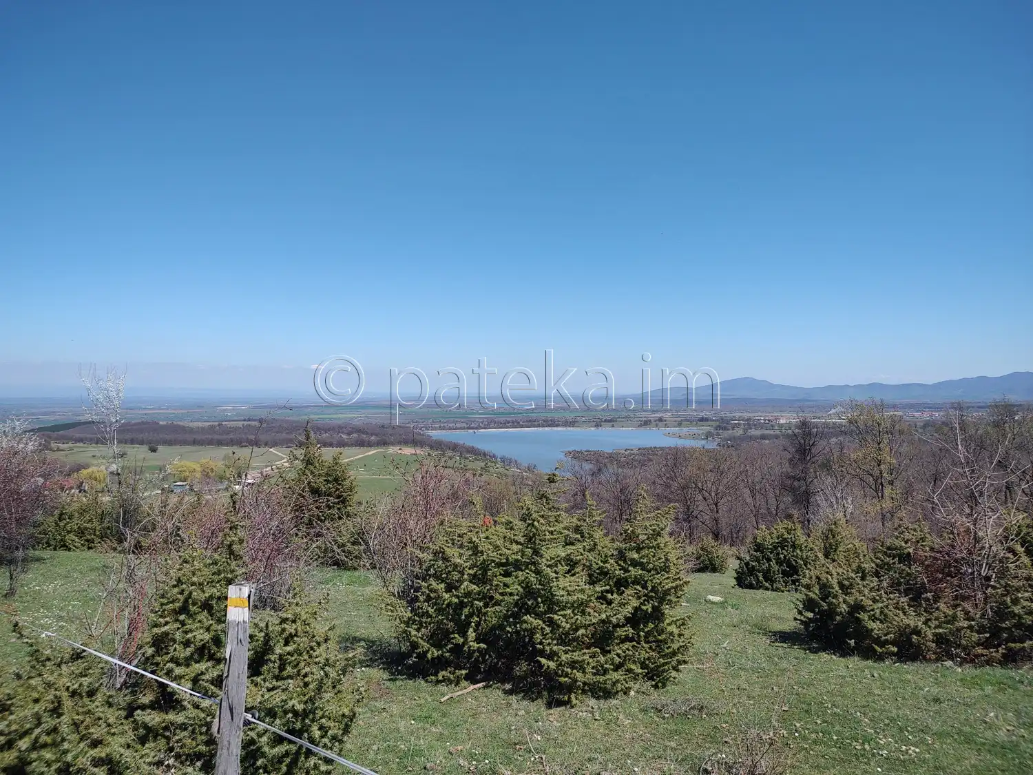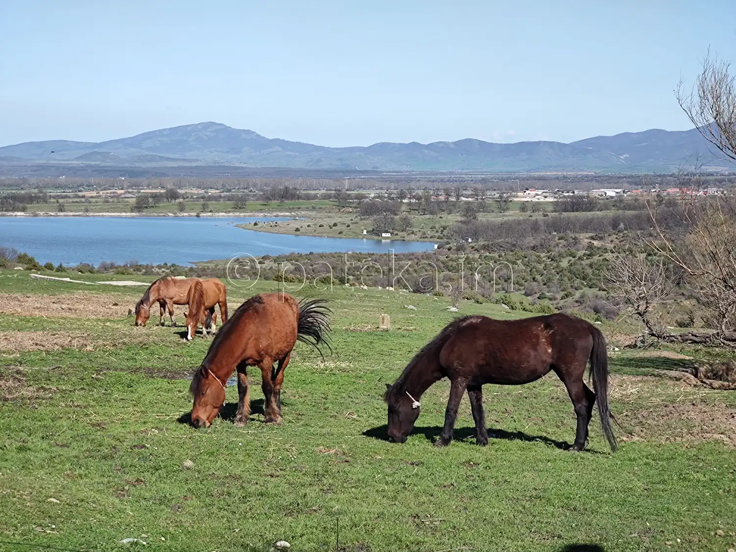 От пътя се разкриват красиви гледки: към язовира, планинските ридове и поляни с коне.