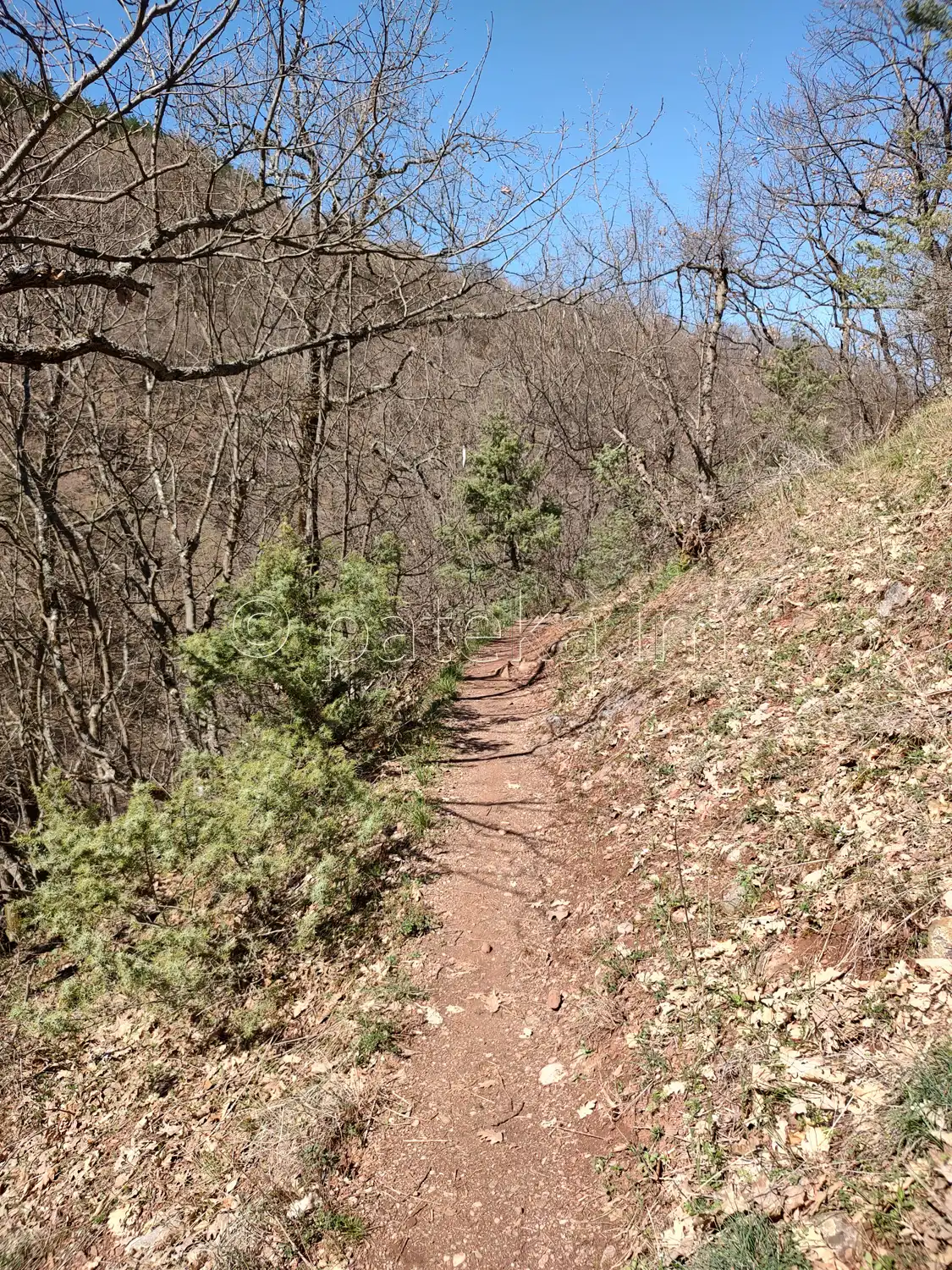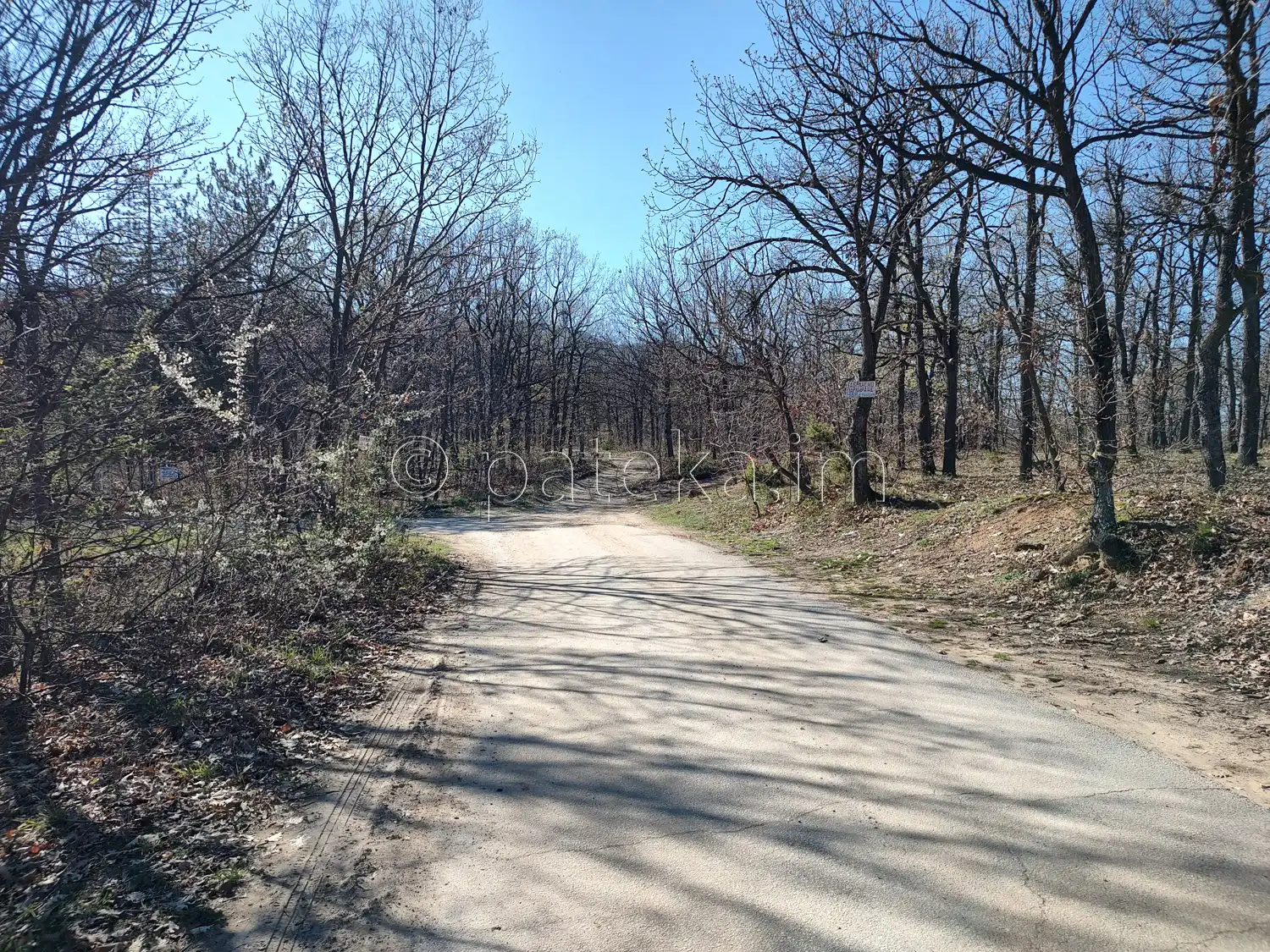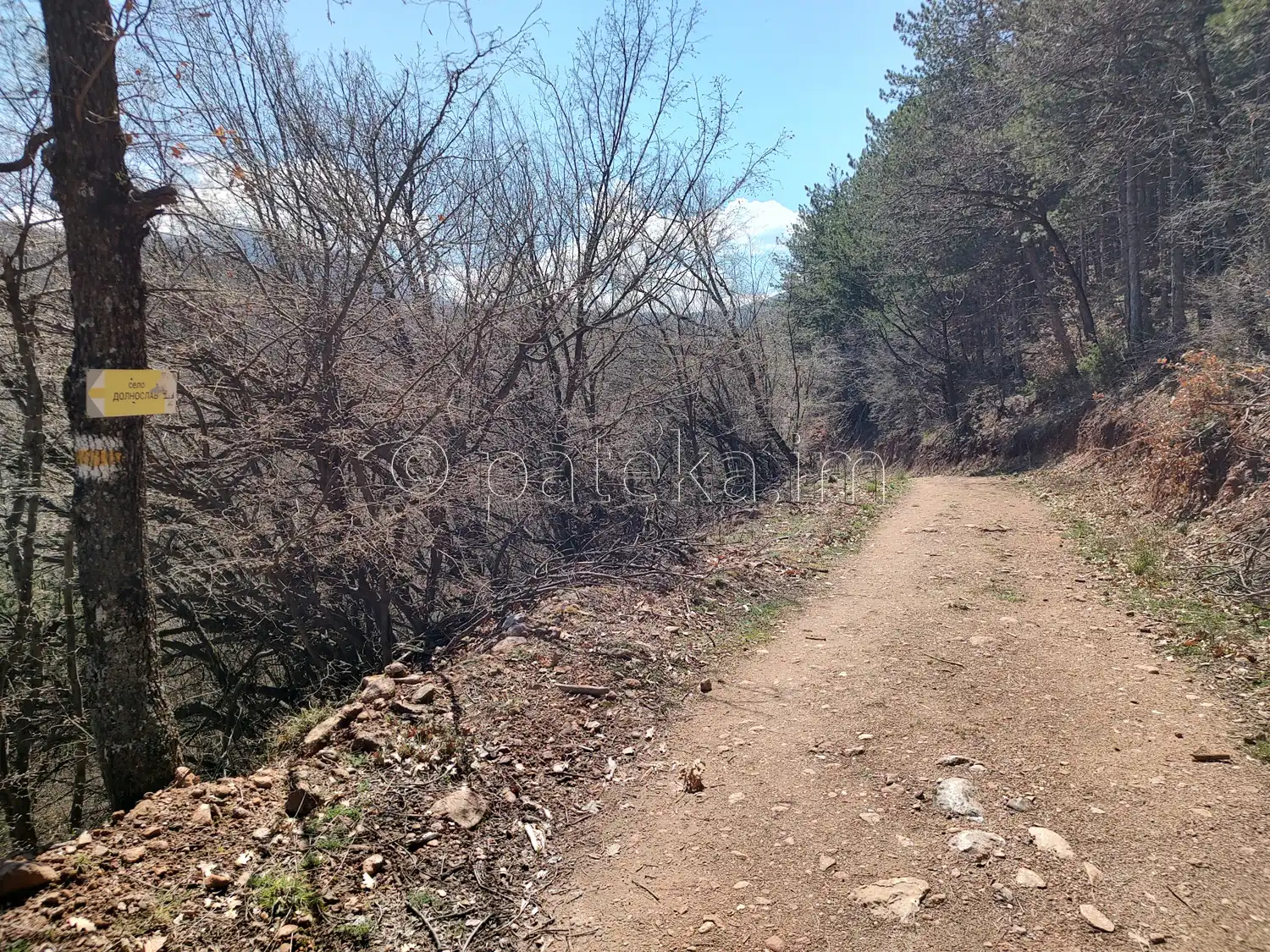 Напред продължава равен черен път, проходим за леки коли, който свършва при паркинг при конната база. Ако решите, можете да оставите автомобила си в края на асфалтовия път и да удължите разходката си с около 30 минути. Имайте предвид, че по-голямата част от маршрута върви на открито, без сянка. Можете да тръгнете пеша и от края на с. Долнослав (от параклисите Св. апостоли Петър и Павел и Св. Панталеймон и вековната гора от чинари). Този вариант отнема около 50-60 минути за достигане до ранчо Дивия град.