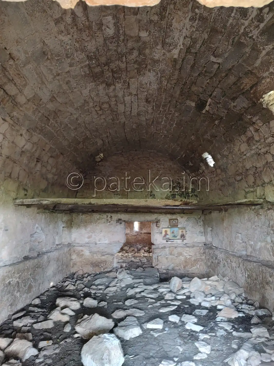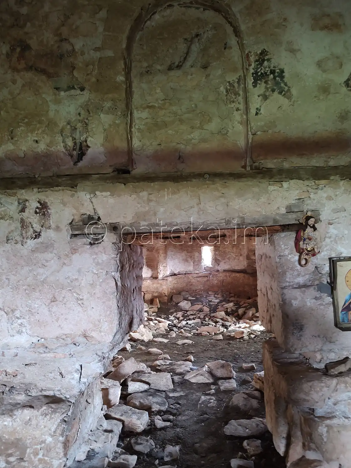 Вътре, в притвора са поставени няколко икони. От стенописите са останали единствено следи вдясно над вратата към наоса. Подът е от пръст, осеян с едри камъни. Поради липсата на врата или преграда вътре влизат животни от пасящите наоколо стада.