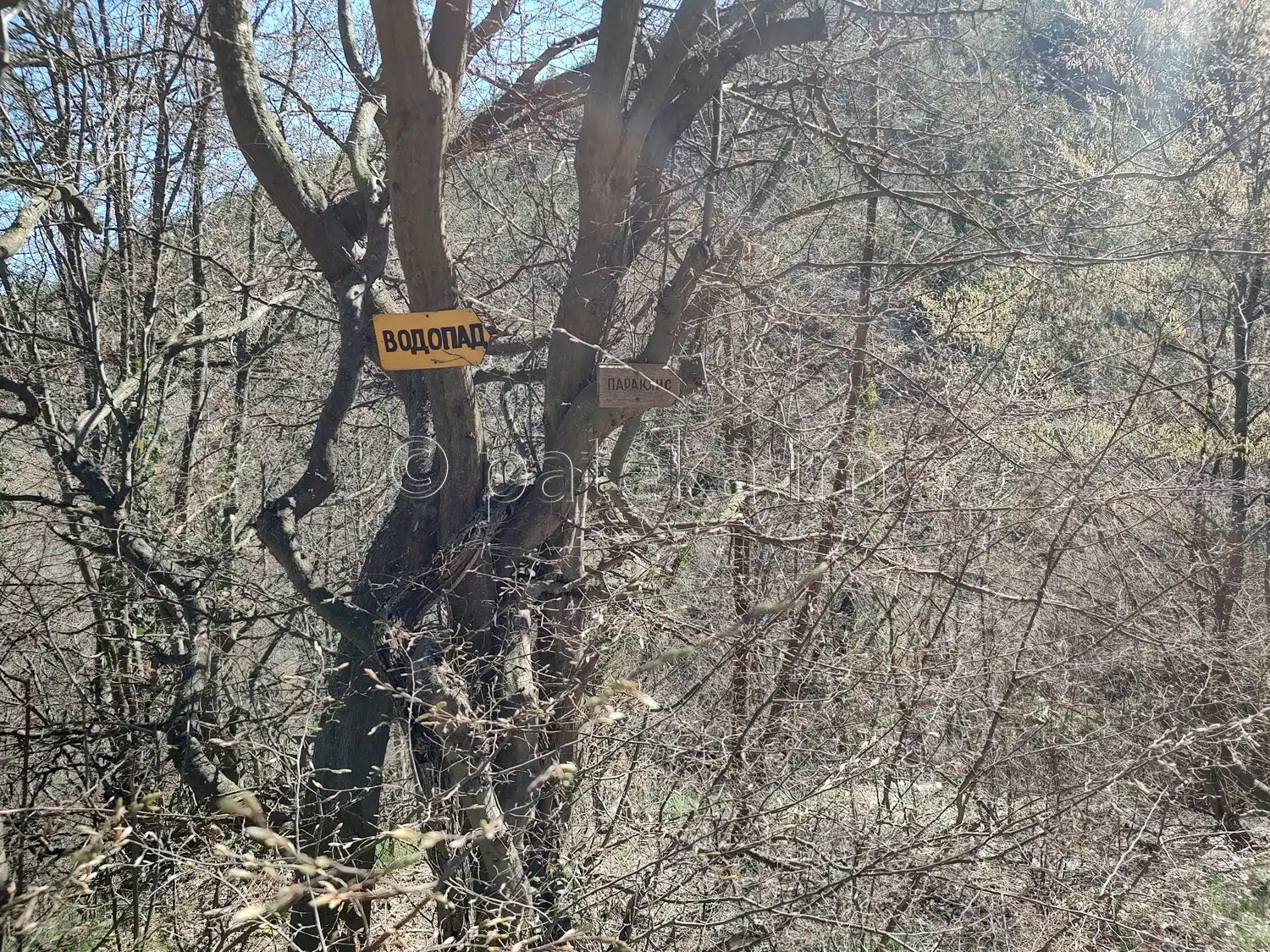 Водопадът е вляво.