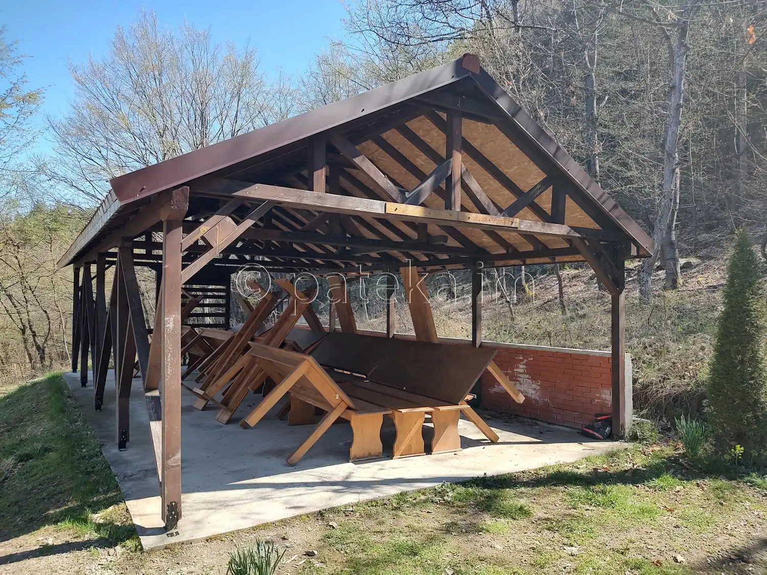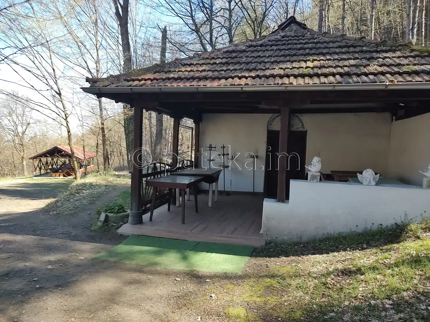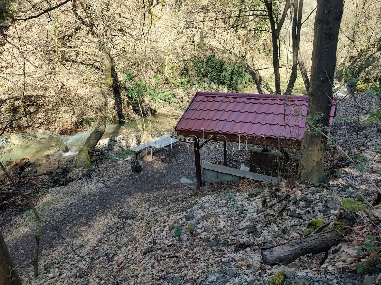 За водопад Св. Богордица се продължава по пътеката. Минава се покрай параклис Успение Богородично и голям навес с маси и пейки след него.