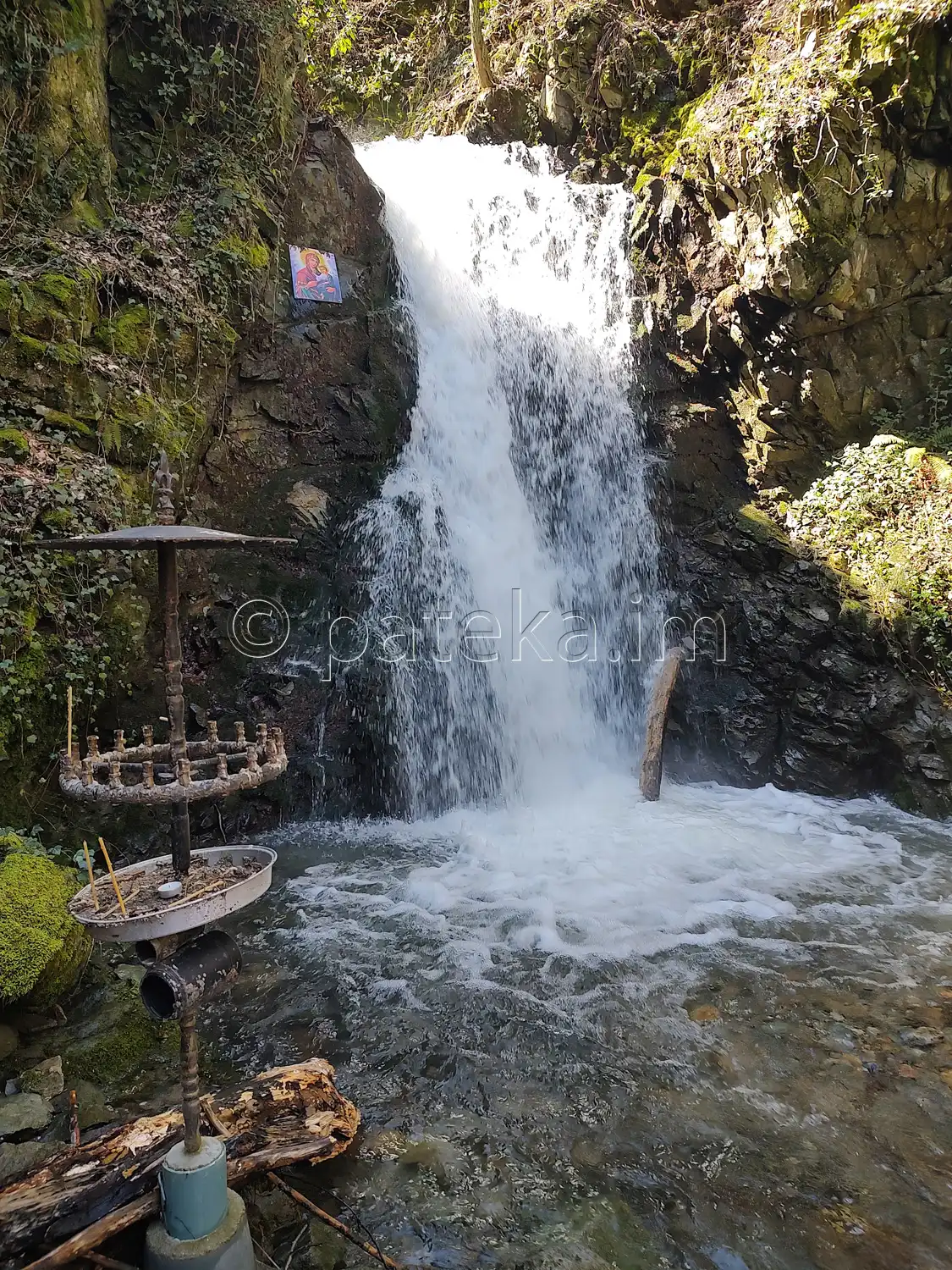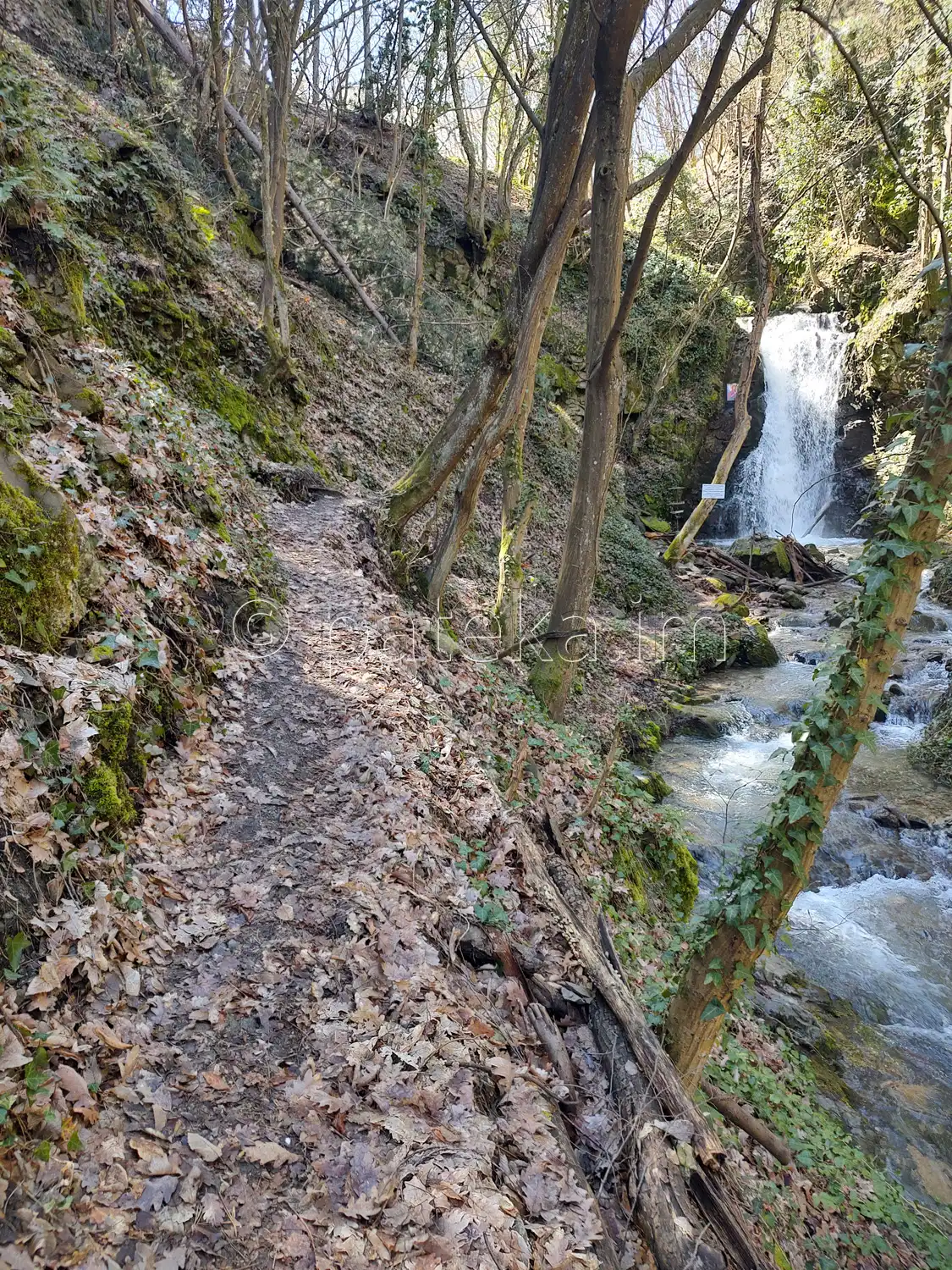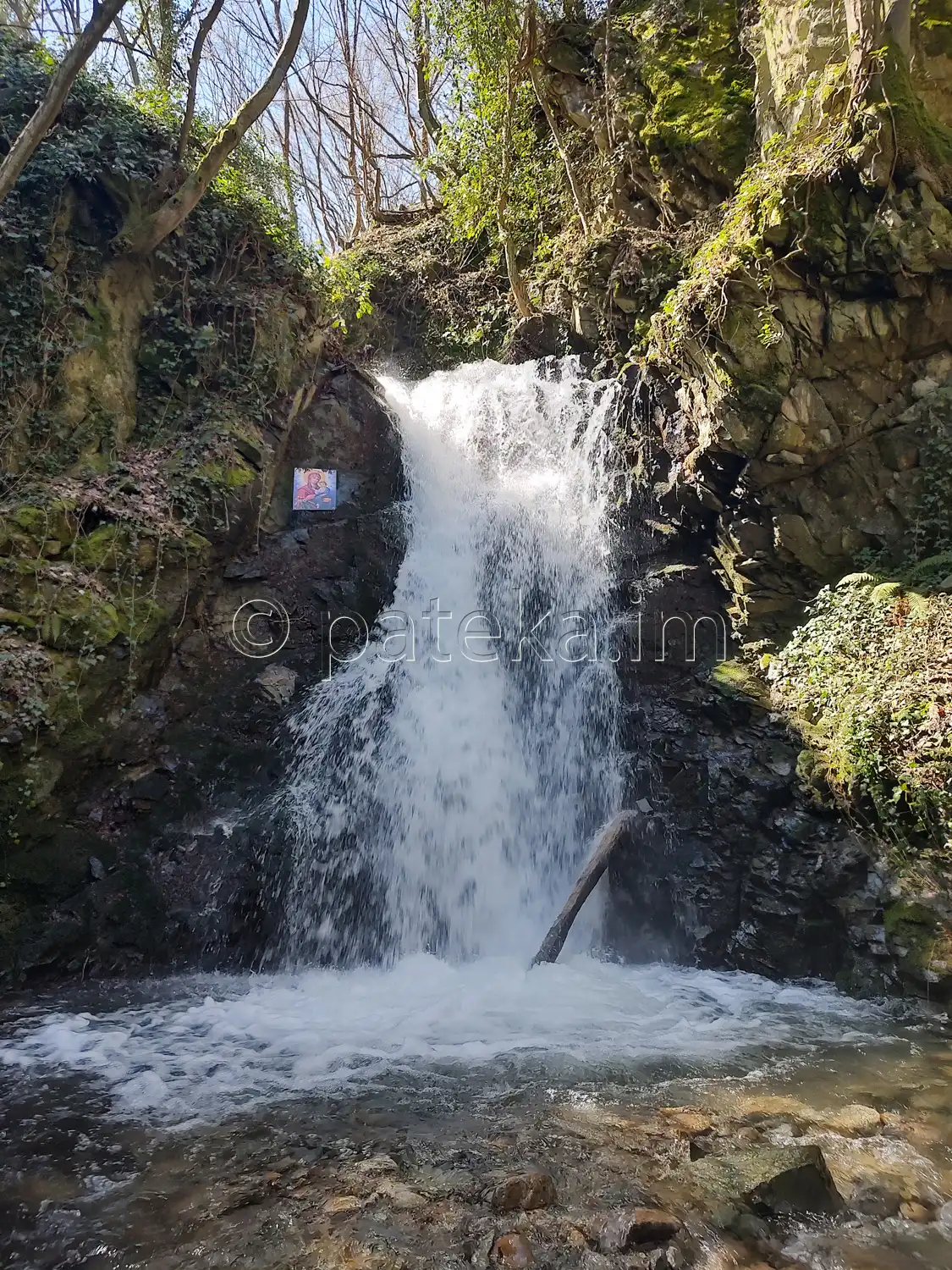 До водопад Св. Богородица остава по-малко от минута. Долу, покрай реката, вдясно се вижда аязмото.